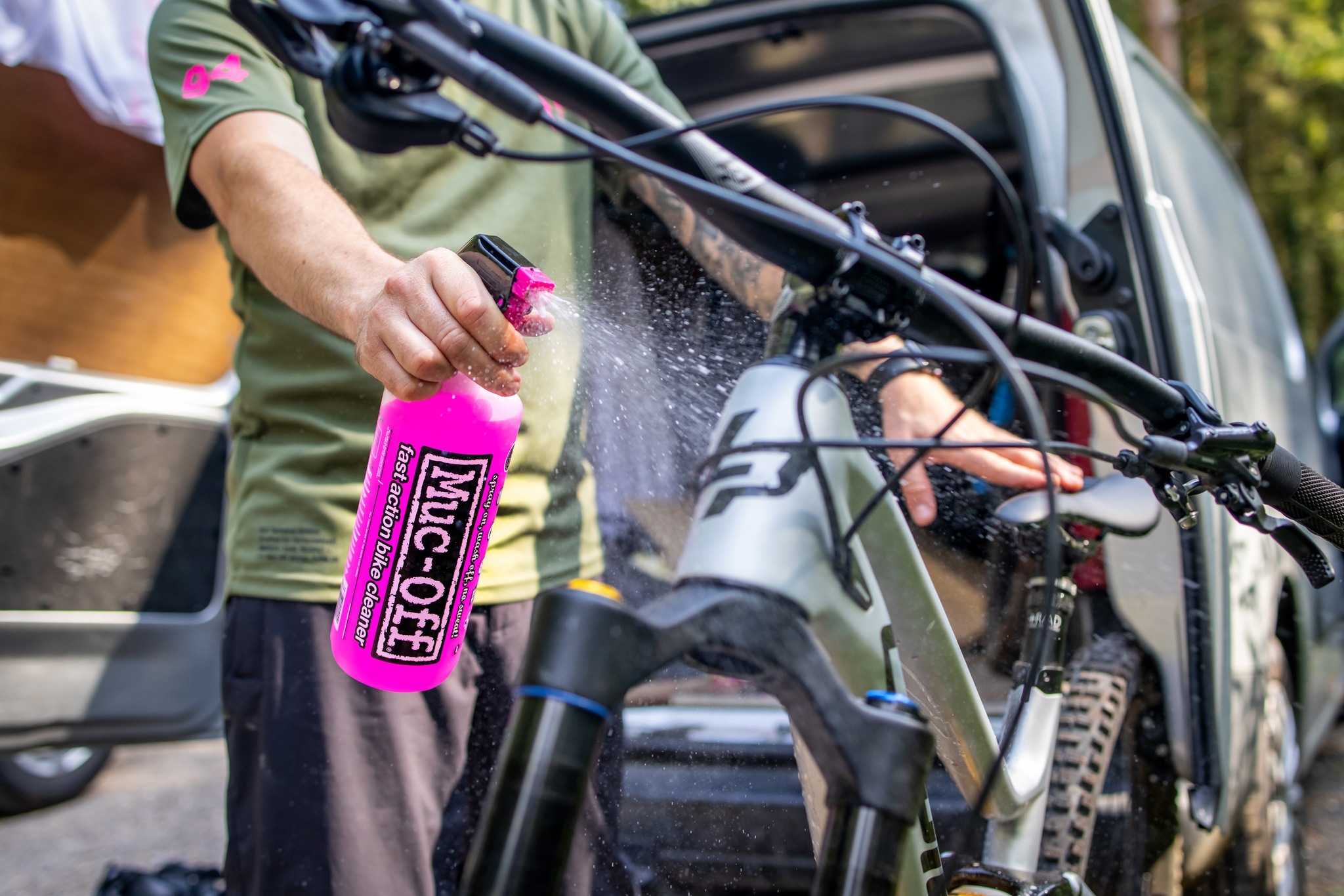 - Enjuaga bien la bicicleta antes de aplicar Nano Tech Bike Cleaner.